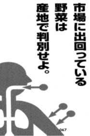 2023-02-06 市場に出回っている野菜は産地で判別せよ 市場に出回っている野菜は産地で判別せよ 農作物はできれば岩手県盛岡市から北、群馬県、東京都より西、神奈川県足柄町あたりから南の産地のものを選んだほうがよい。放射性物質は雲のように高い上空を舞うのではなく、地形に沿って移動するので、その風下では放射性物質が降っている。つまり、山脈のような高い山を越えることができないので、山脈の内側、つまり関東平野は汚染されている可能性が高い。安心できる産地の野菜をた<さん摂取しよう。 調理する際は、水洗いしたり茄でたりすることで付着している放射性物質をなるべく取り除くことも大事だ。 『反被爆宣言』武田邦彦著 双葉社刊 2012年 より